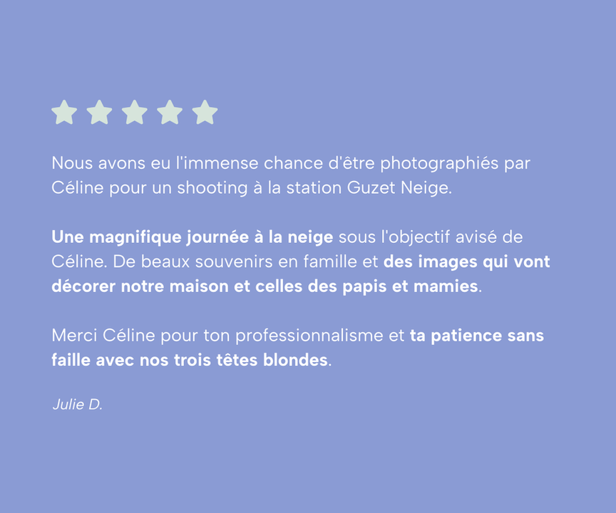 Spécialiste de la photo de famille et mariage depuis 2012, j'utilise la photographie comme outil de mémoire. Je vous accompagne à travers les années et les belles étapes de la vie.